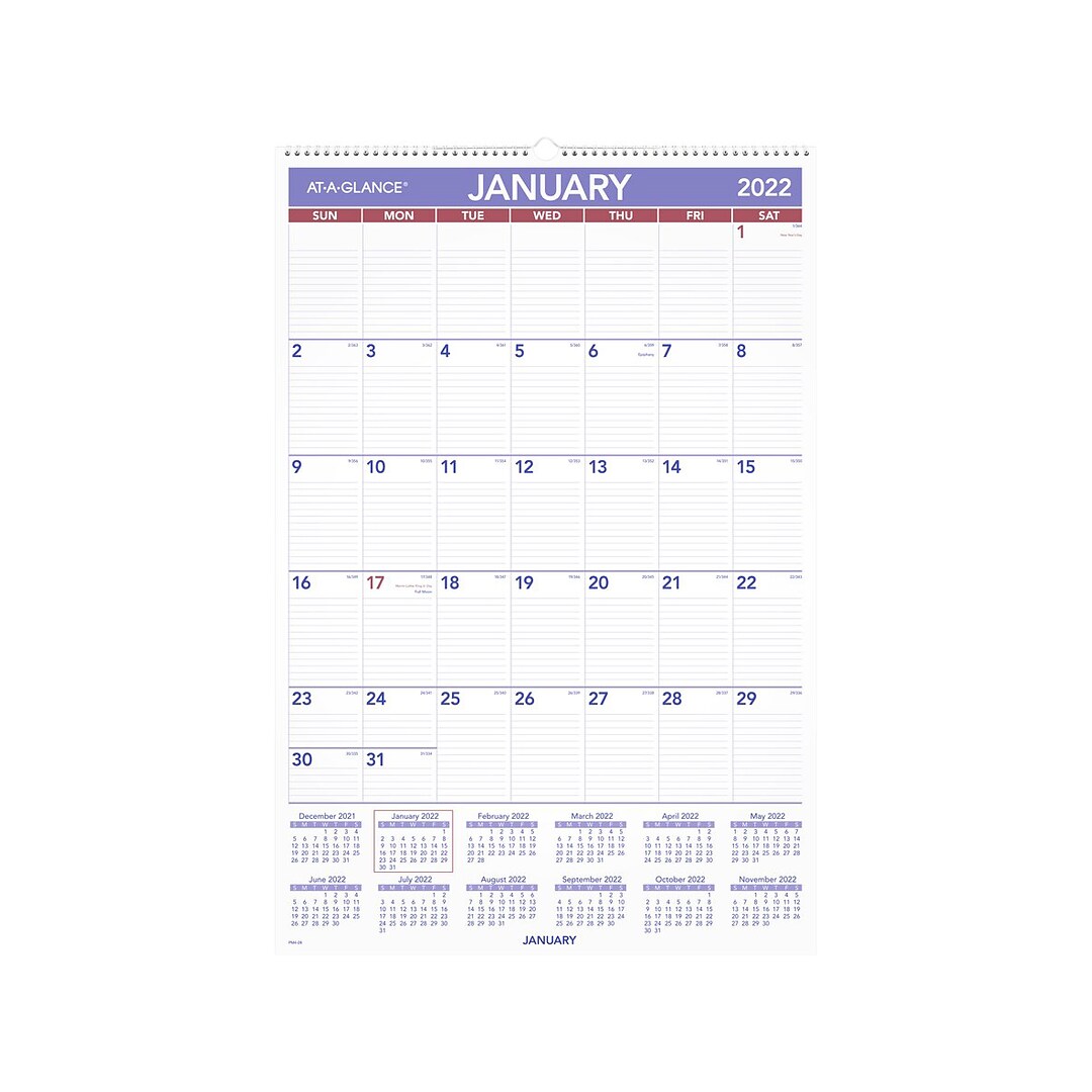 At A Glance Pm428 20 X 30 Monthly January 2022 December 2022 Wirebound Wall Calendar